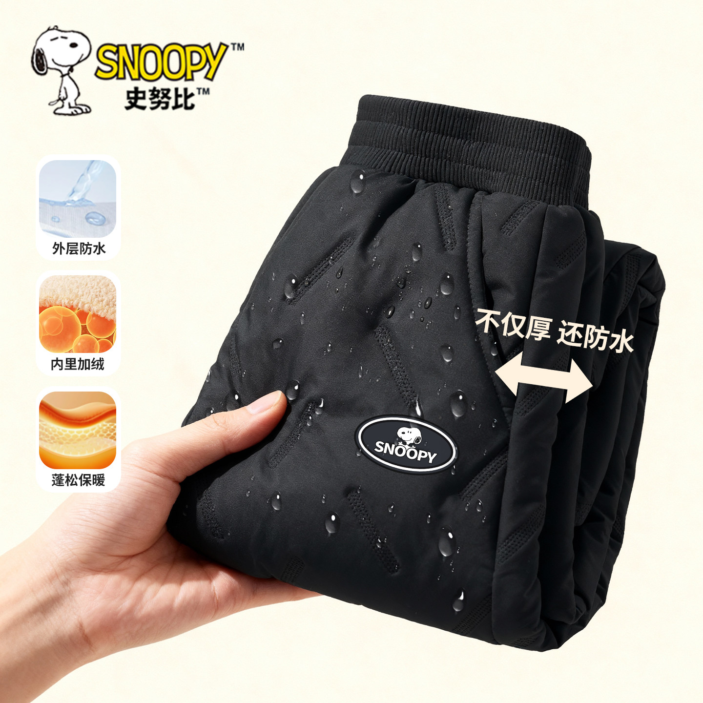 史努比男童棉裤冬加厚羊羔绒裤子男大童一体绒长裤保暖儿童加绒裤