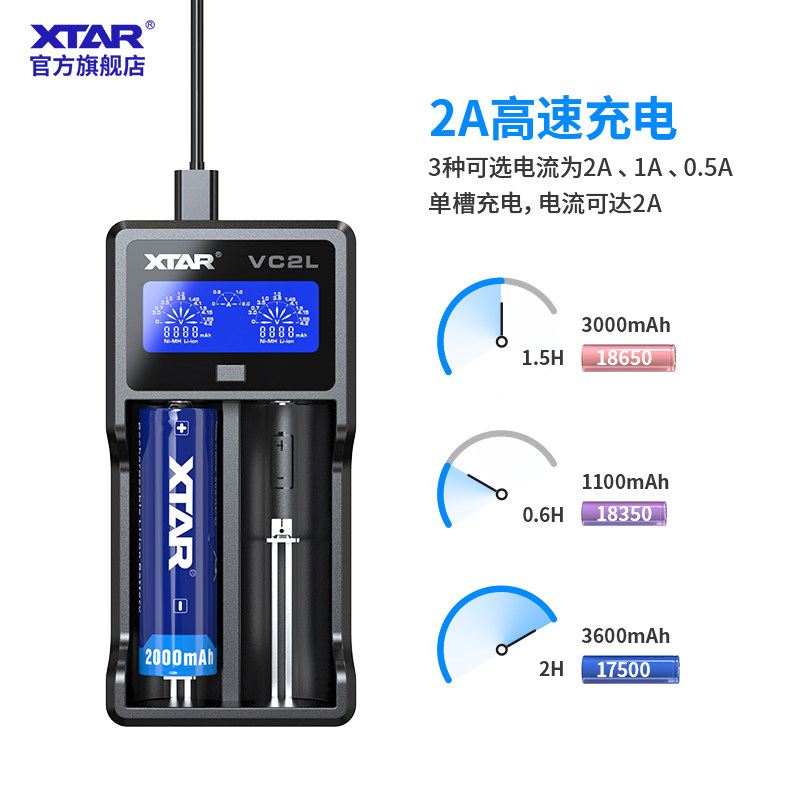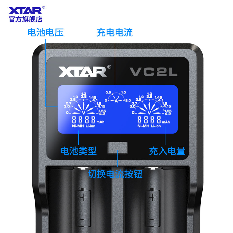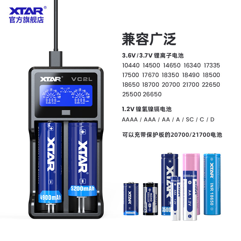 XTAR VC2L 18650 21700强光手电锂电池5号7号1.2V镍氢电池充电器