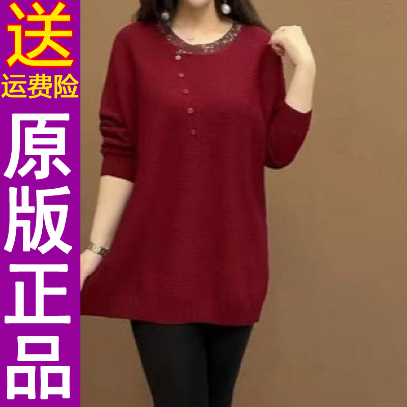 原版正品秋冬新款妈妈时尚上衣宽松毛衣中长款气质大版裙打底衫女