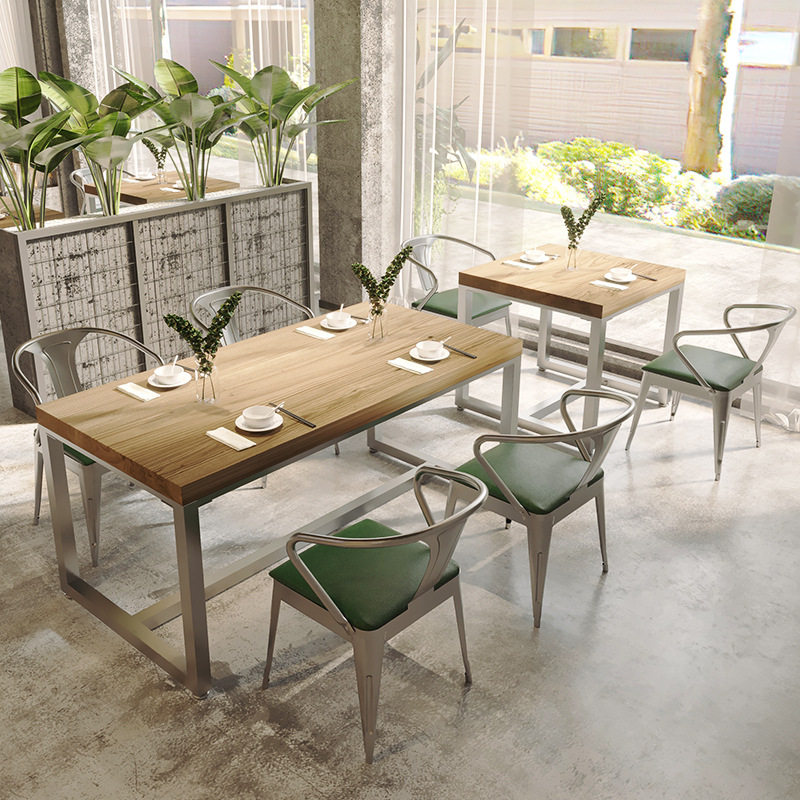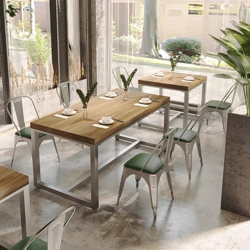 工业风实木餐桌双人成套美式咖啡厅酒吧餐桌椅组合商用长方形饭桌