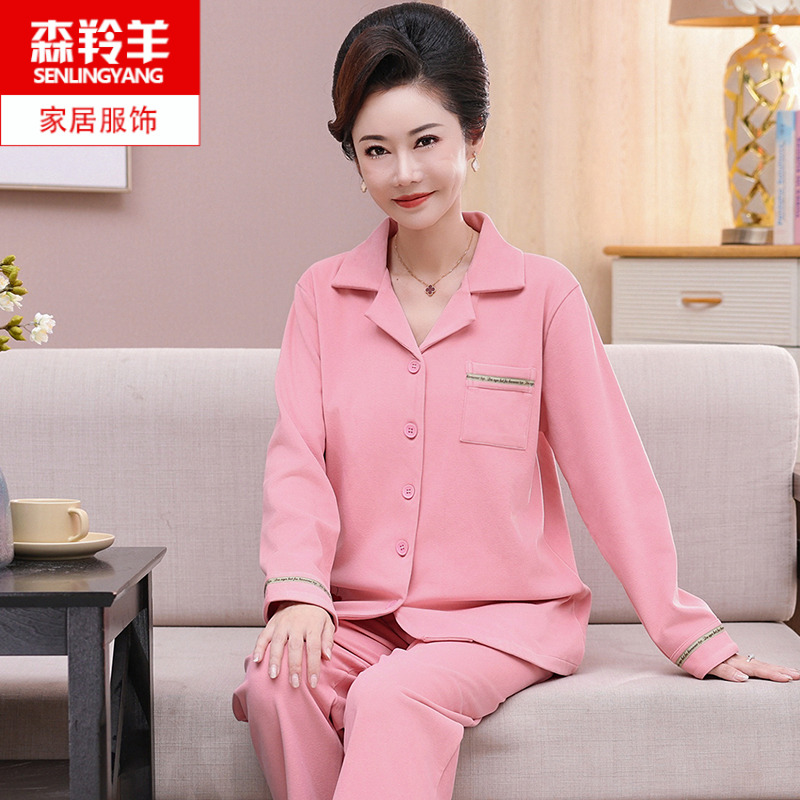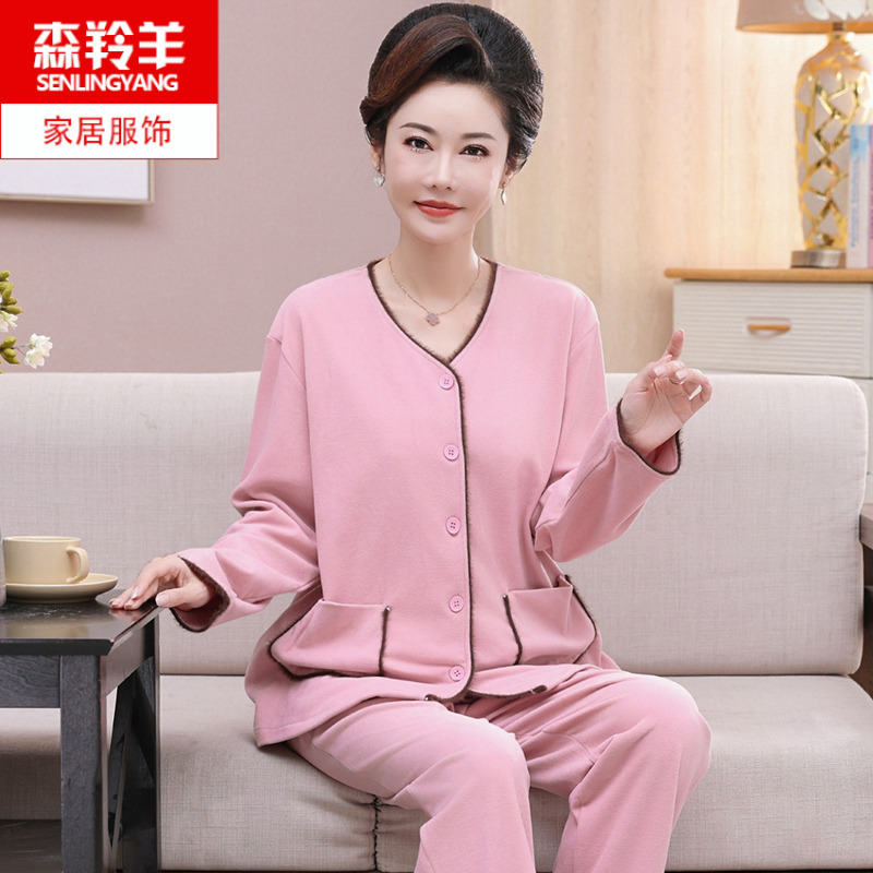 德绒妈妈睡衣女长袖开衫秋冬套装
