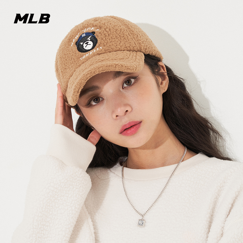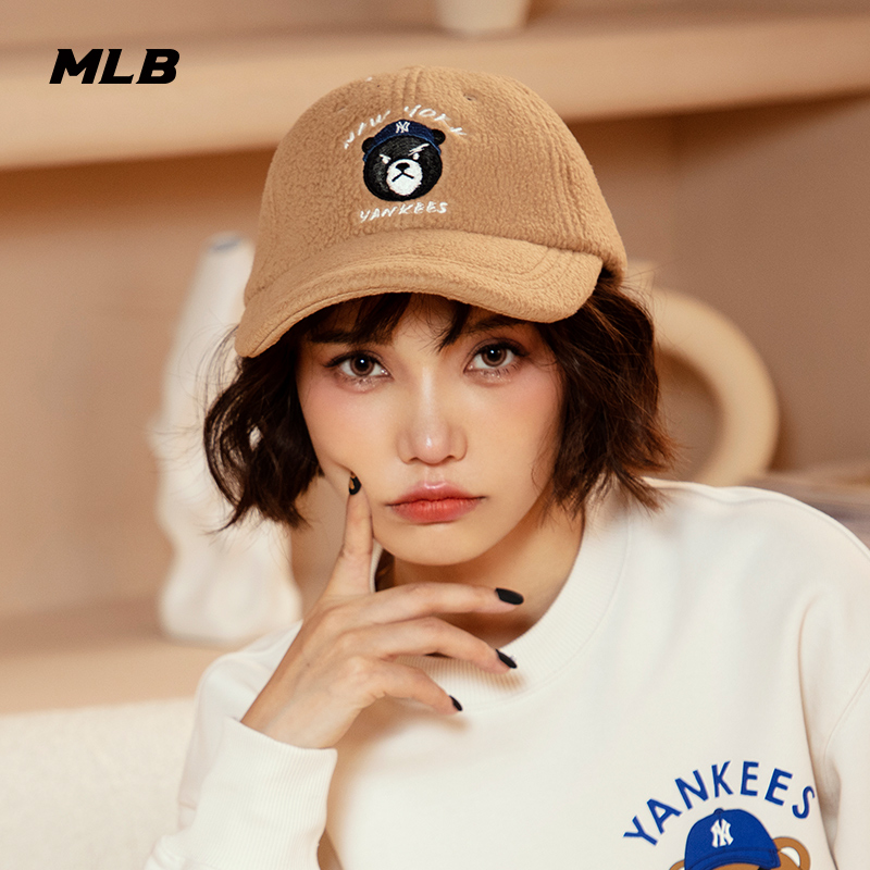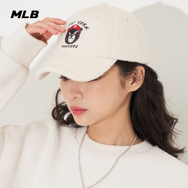MLB官方 男女情侣棒球帽皱眉熊仿羊羔绒运动休闲冬季CPF04