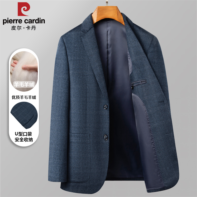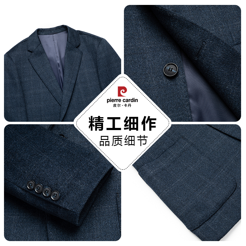 皮尔卡丹高端羊绒休闲西装男春秋款商务羊毛西服单西休闲毛呢外套