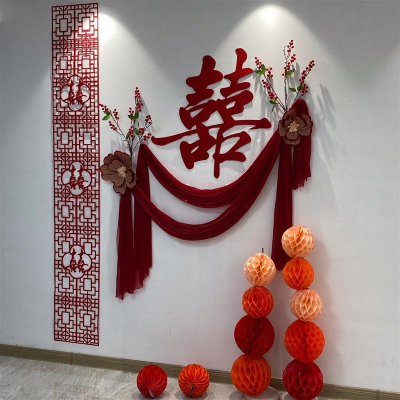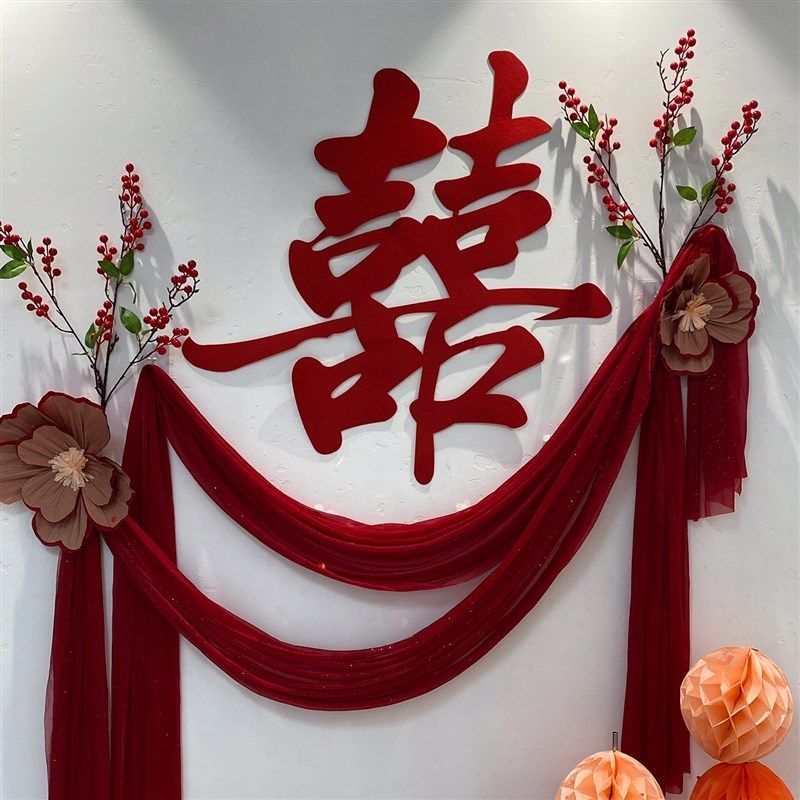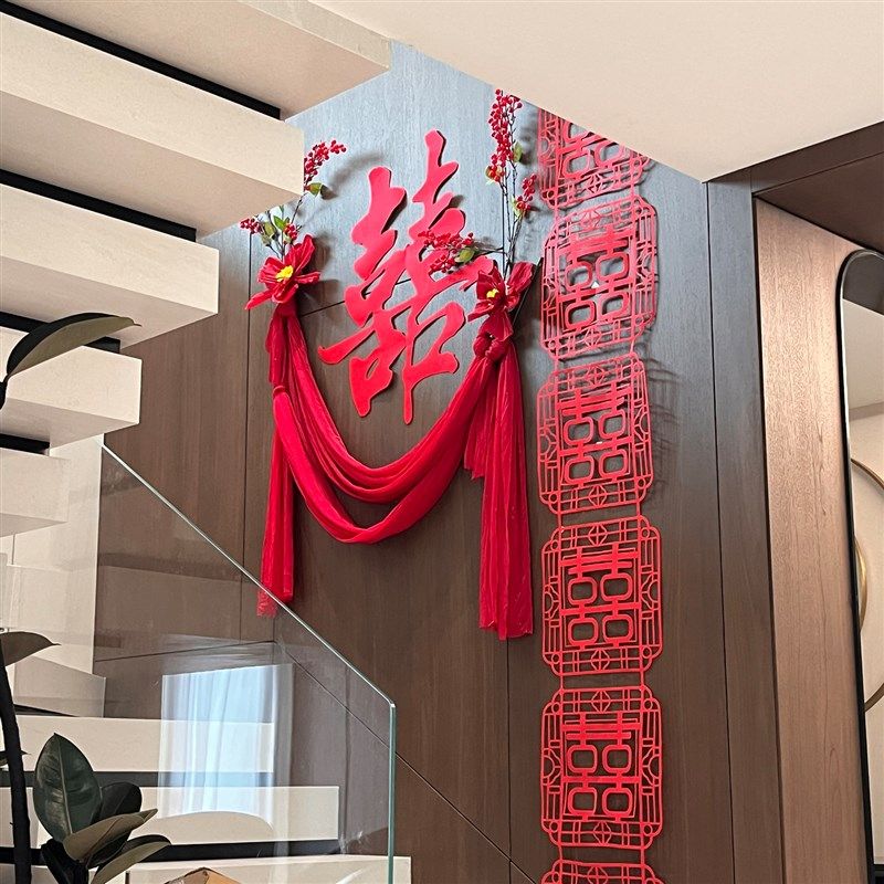 婚房布置套装结婚长条喜字窗帘男方新房女方卧室出嫁闺房客厅拉花