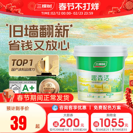 三棵树内墙乳胶漆室内家用自刷涂料墙面漆刷墙白色翻新补墙漆油漆