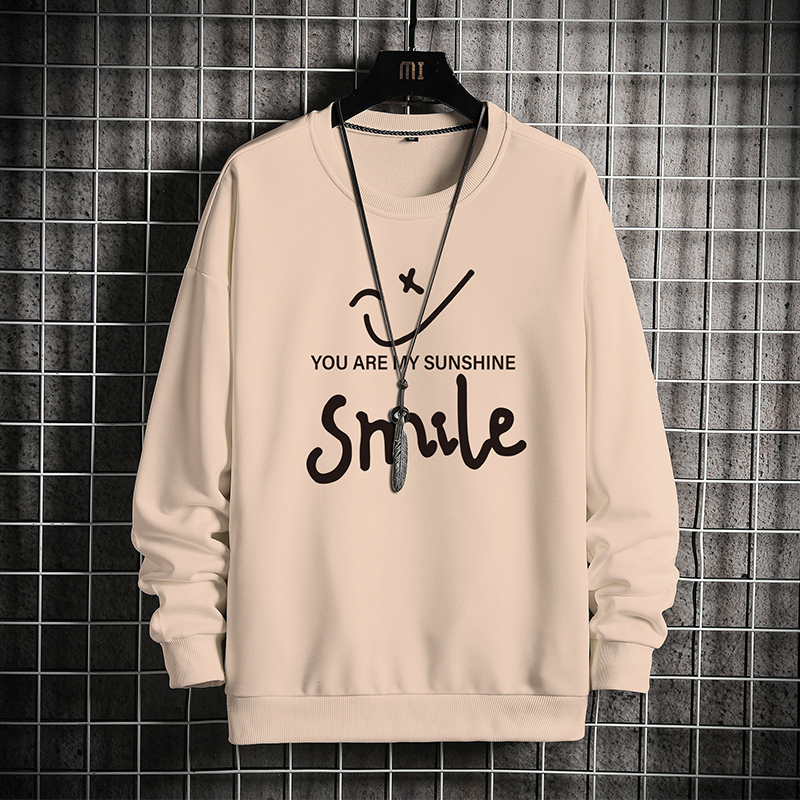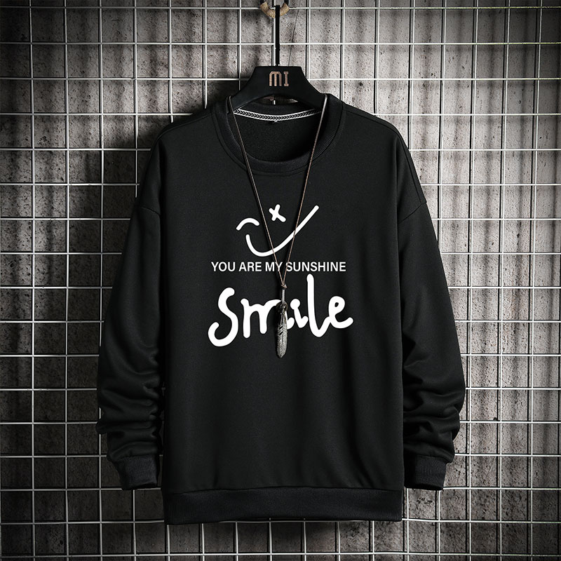 港风笑脸卫衣男秋冬季新款打底衫宽松无帽ins潮牌套头圆领上衣服t