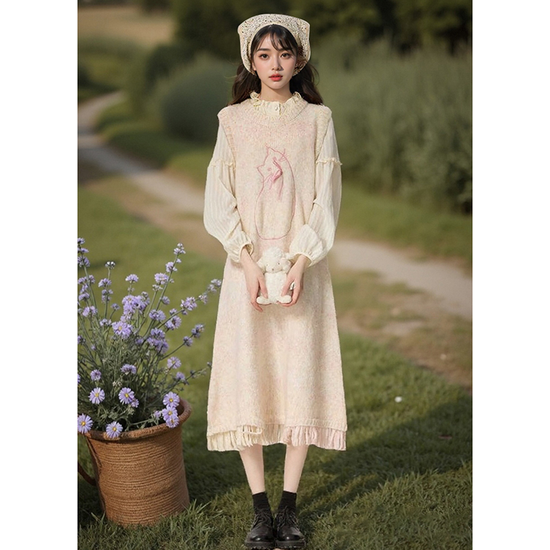 【甜心小姐】2025年春季新款可爱甜美粉色背心连衣裙+衬衫两件套