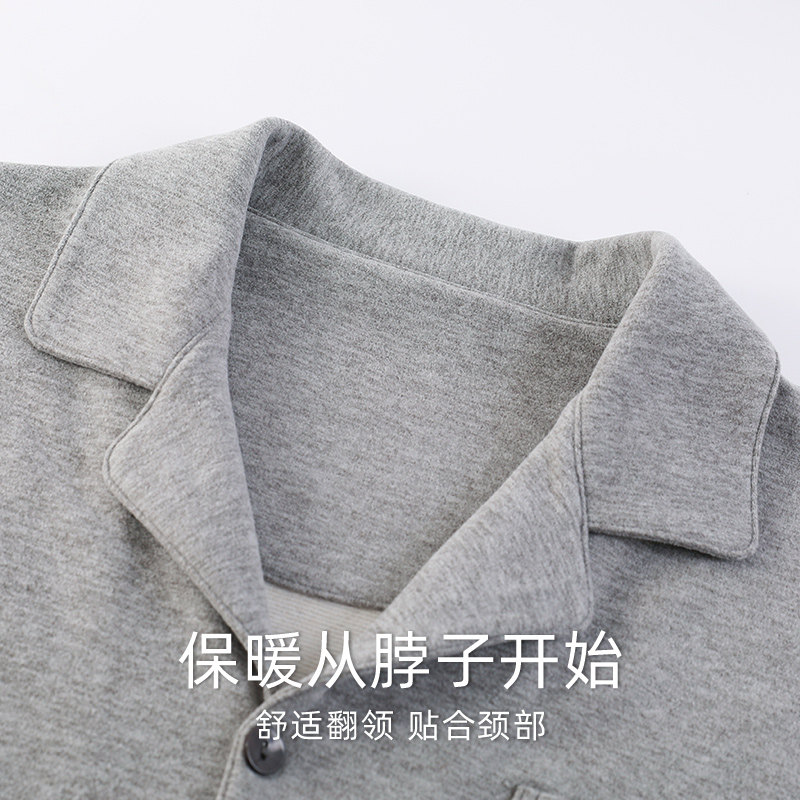 浪莎德绒睡衣男士蚕丝羊毛薄绒秋冬季加厚保暖开衫简约套装家居服