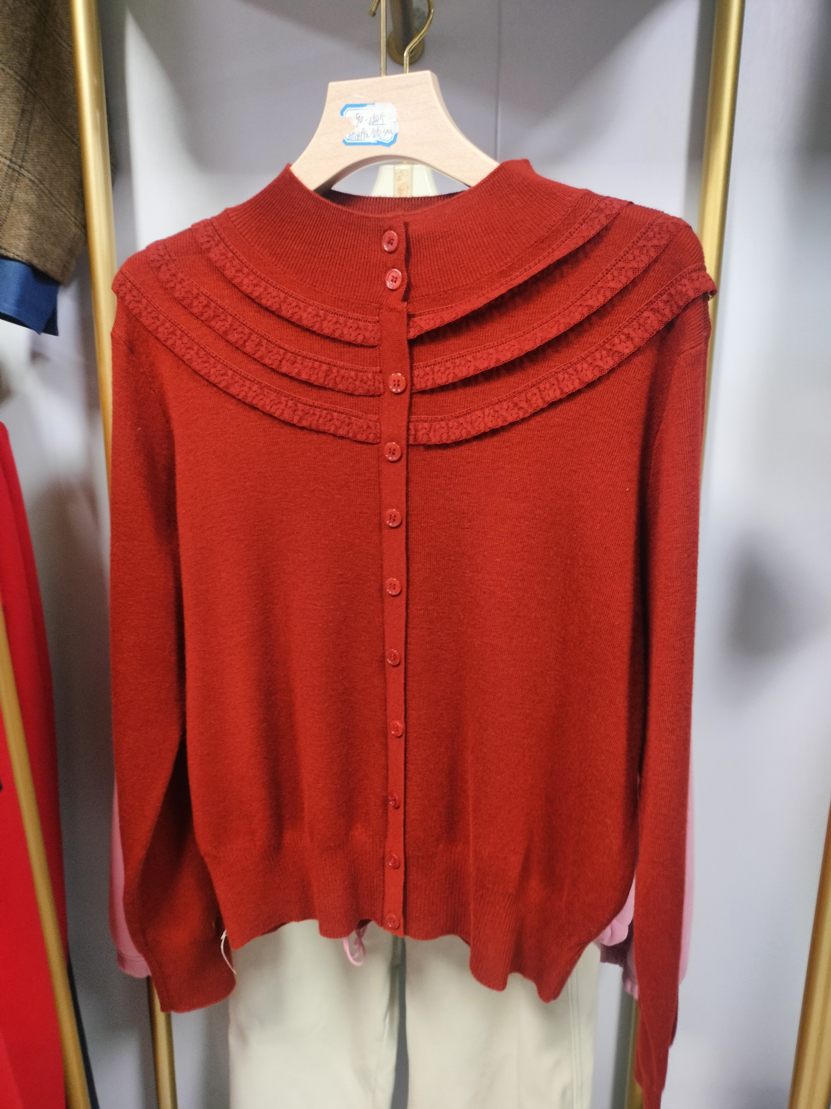 2026年欧洲站春季新款时尚百搭简约圆领宽松版蕾丝边针织衫