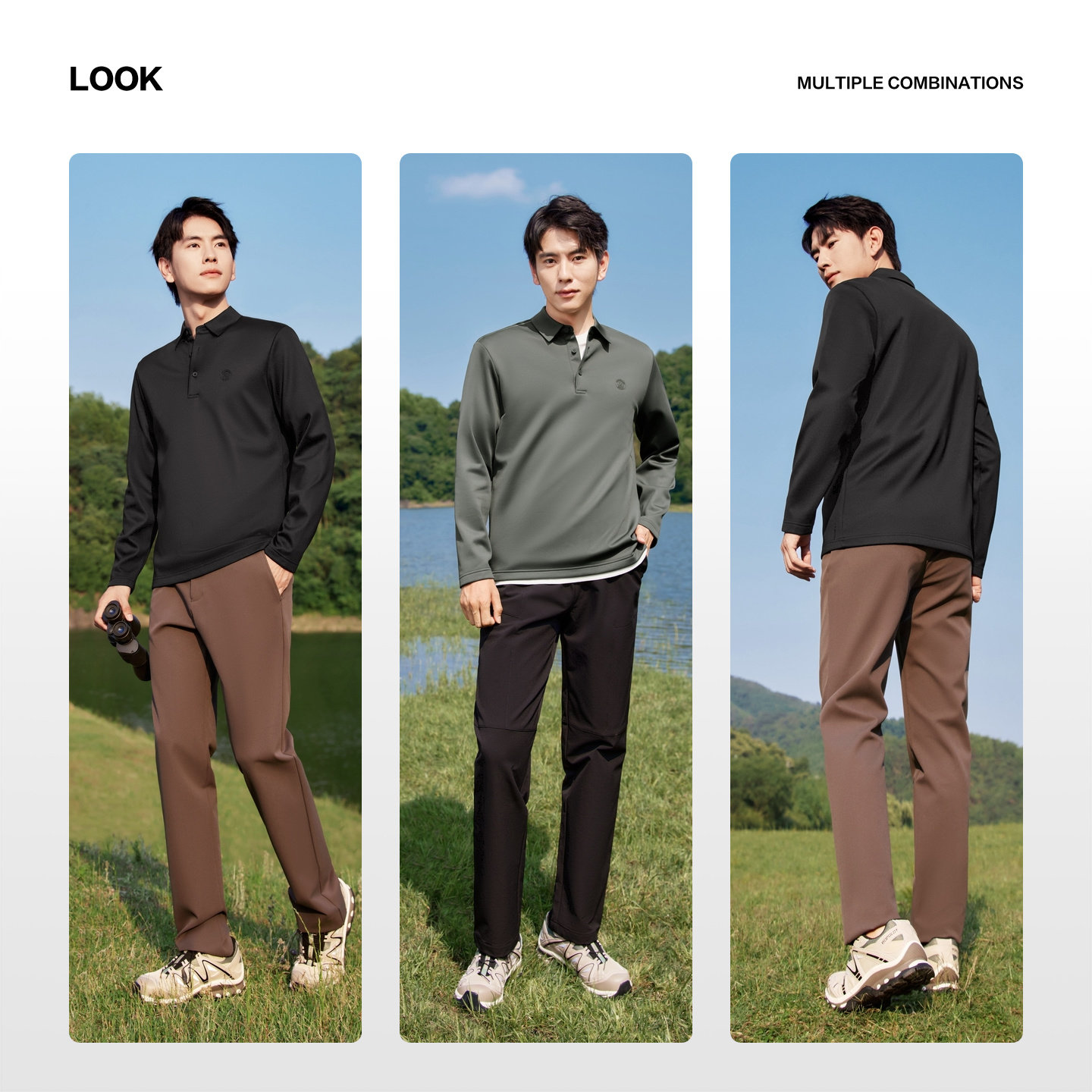 【户外/无缝/高弹】柒牌易打理长袖polo衫男装含羊毛保暖翻领T恤