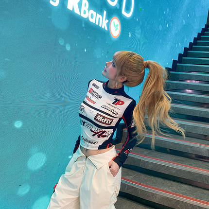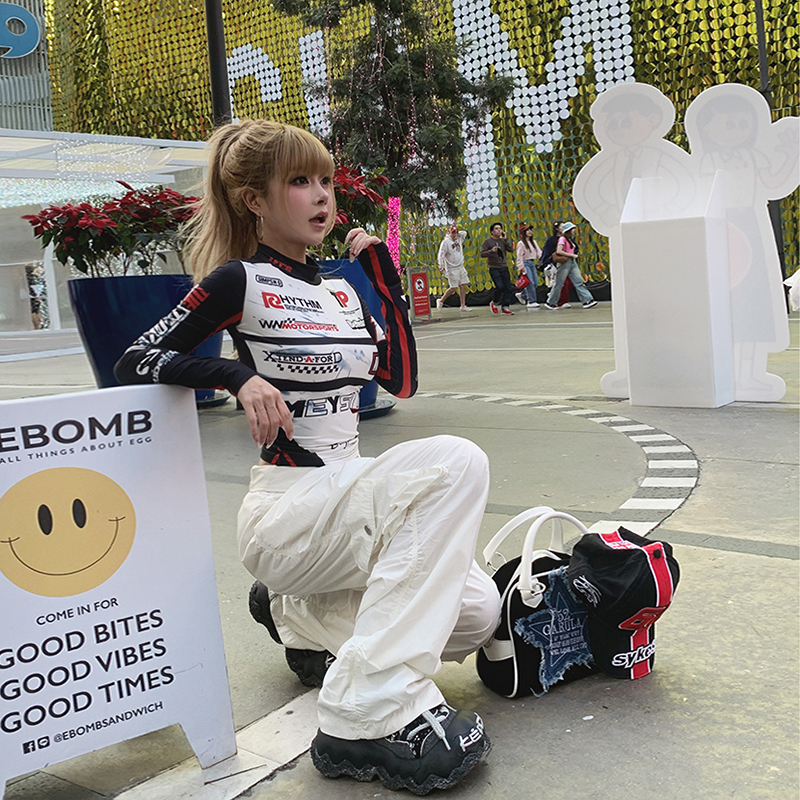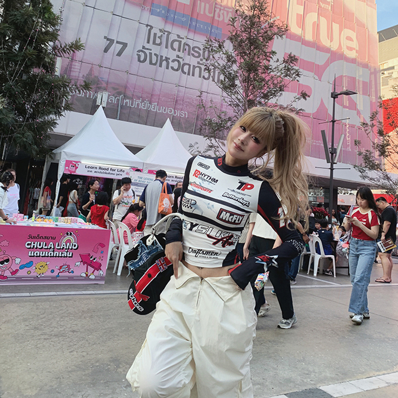 初代美希 紧身t恤女骑2025新款防晒罩衫赛车服打底衫掐腰机车上衣