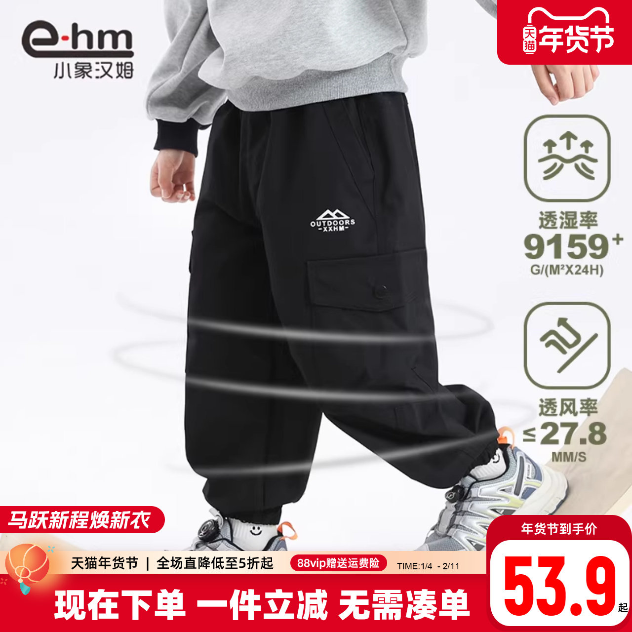 小象汉姆秋冬装防水裤子耐磨长裤