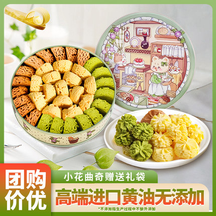江南状元小熊之家小花曲奇饼干儿童进口黄油铁盒装圣诞礼盒下午茶