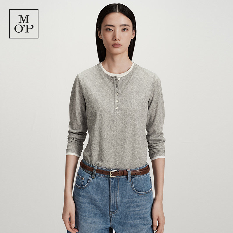 Marc O'Polo/MOP2026春季新款撞色边假两件长袖T恤