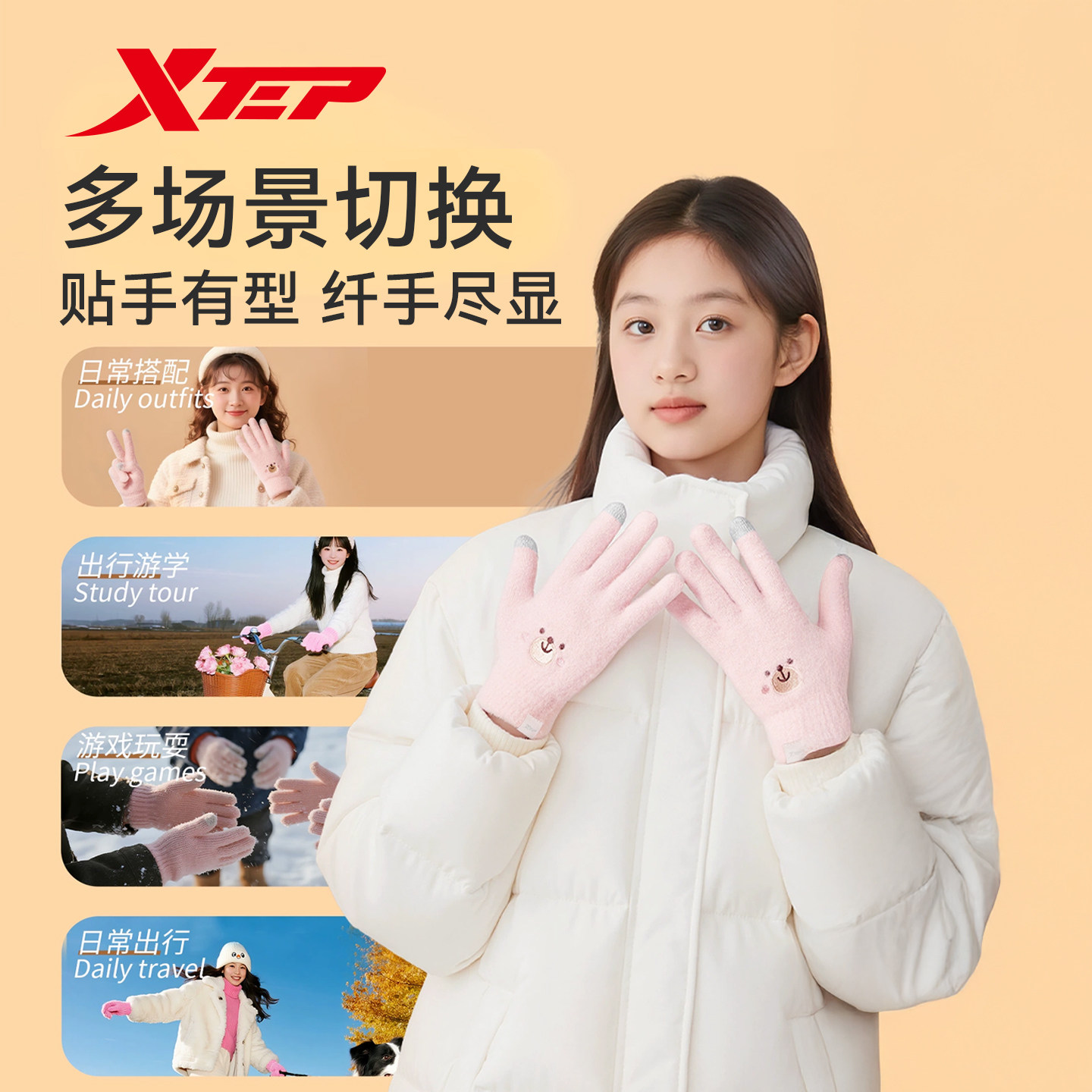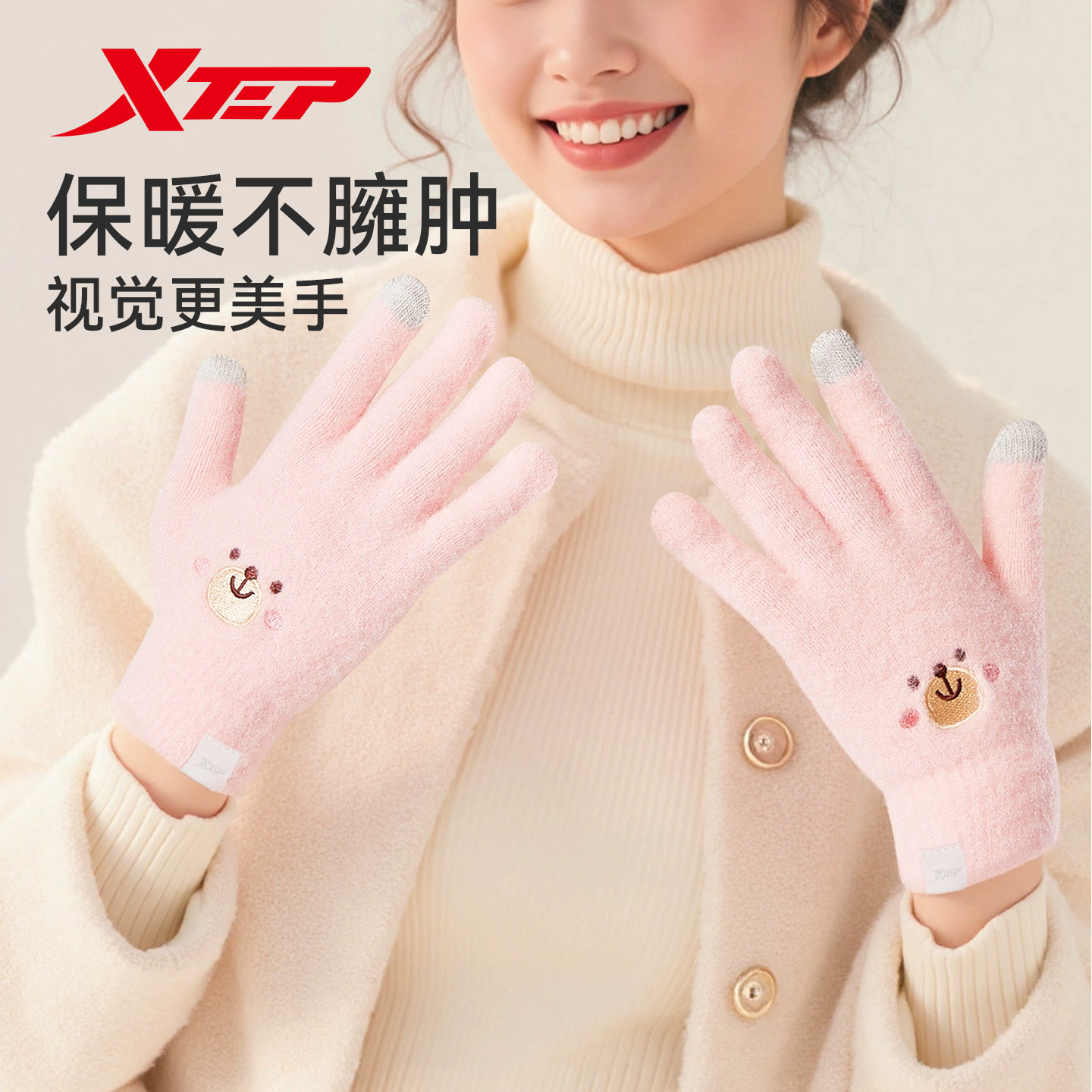 特步手套女冬季可爱女生加绒加厚学生可触屏女士骑车防寒保暖骑行