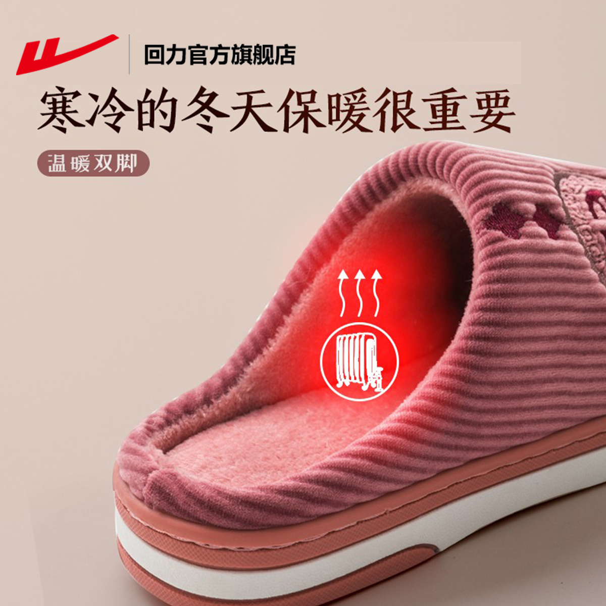 回力官方旗舰店棉拖鞋女士冬季厚底家居防滑中老年人加绒保暖棉鞋