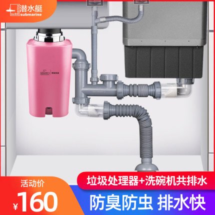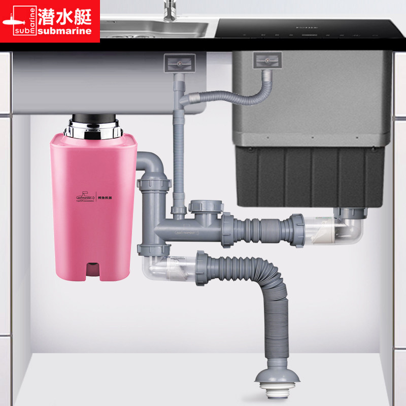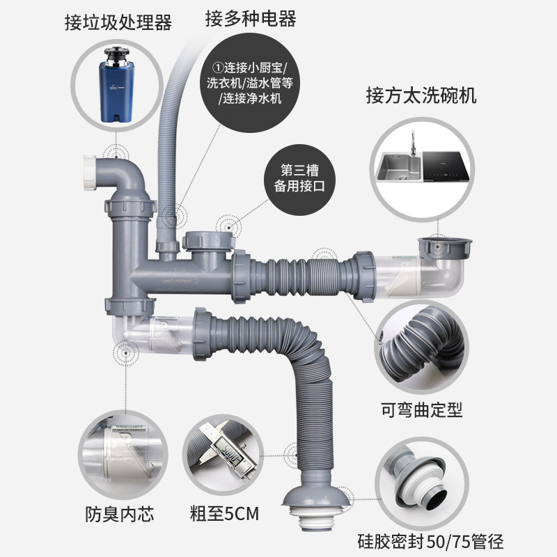 潜水艇适配方太水槽洗碗机接垃圾处理器厨房双槽下水管三槽排水管