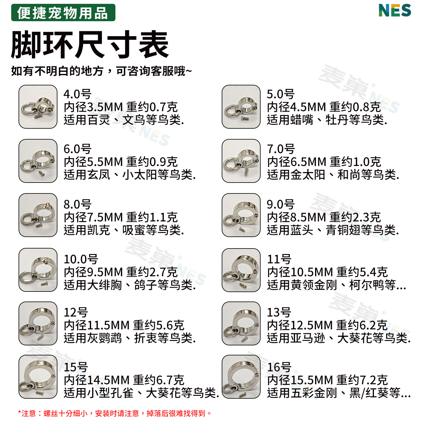 小太阳专用鹦鹉脚环脚链活扣用品玄凤鸟放飞牵引绳牵引带定制刻字