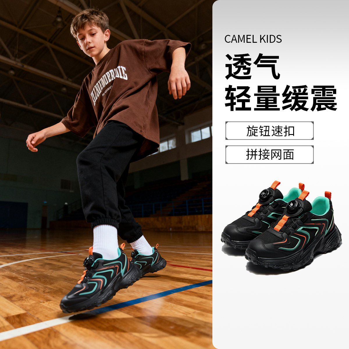 骆驼儿童运动鞋子旋转扣男童网鞋