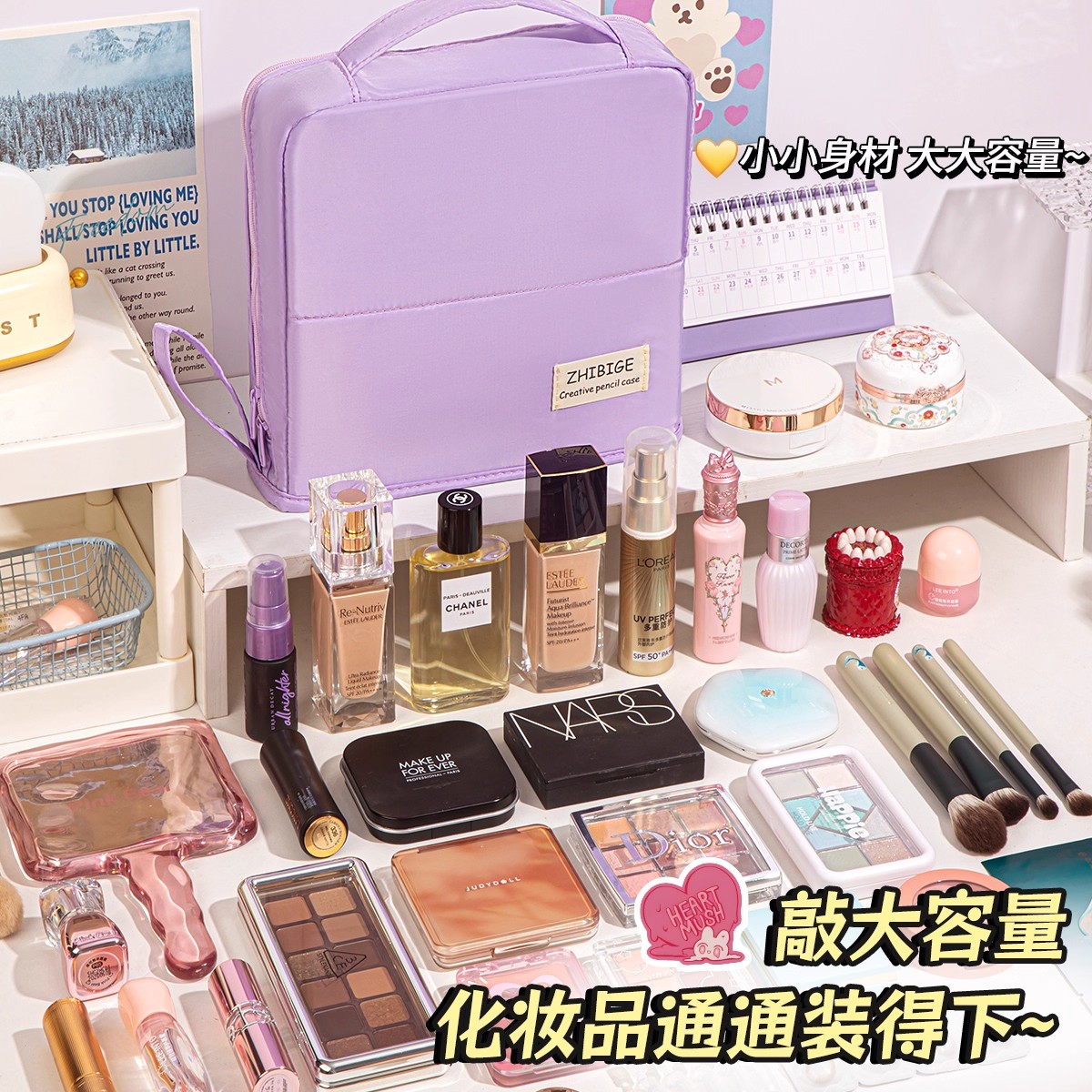 化妆包大容量2025新款收纳分区便携式化妆品手提旅行收纳包女大容量笔袋分区磁吸立式不塌旅游懒人洗漱收纳袋