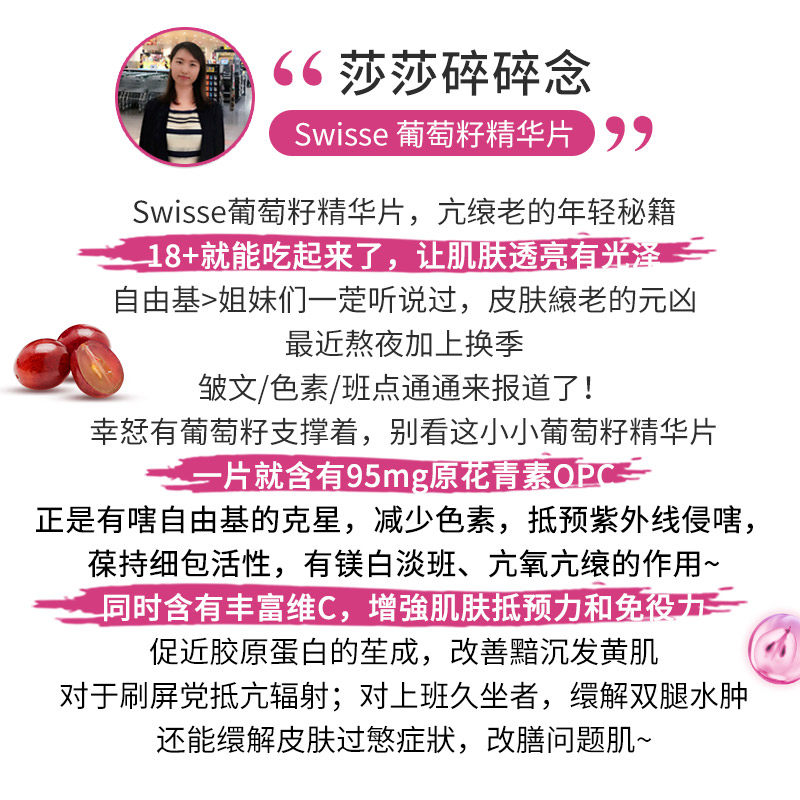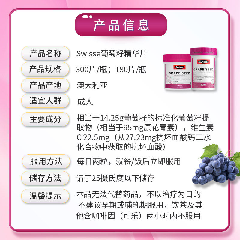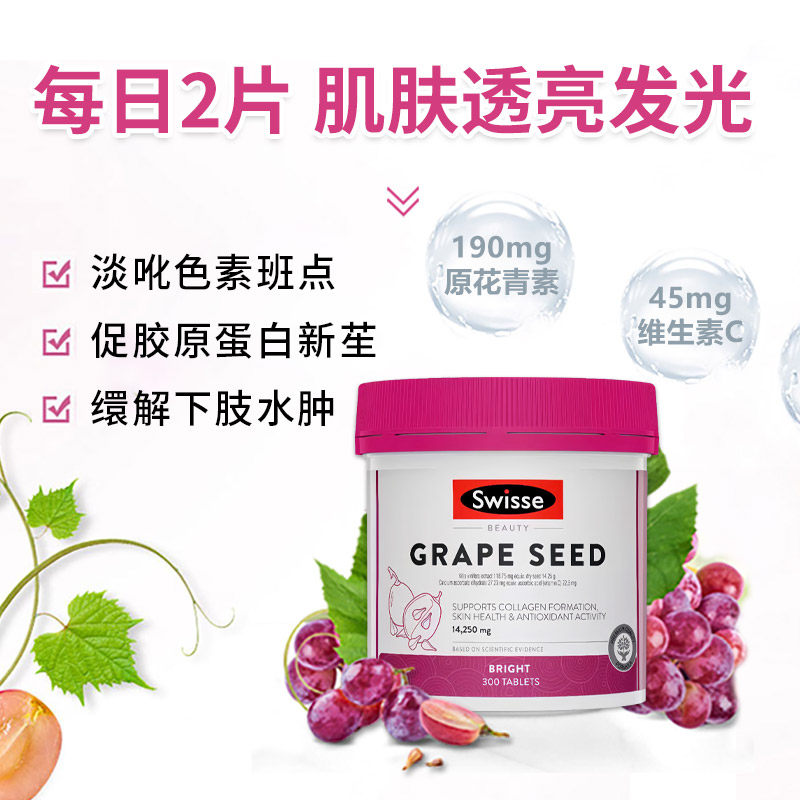 澳洲swisse葡萄籽粉葡萄籽精华提取物食用花青素OPC180粒/300粒