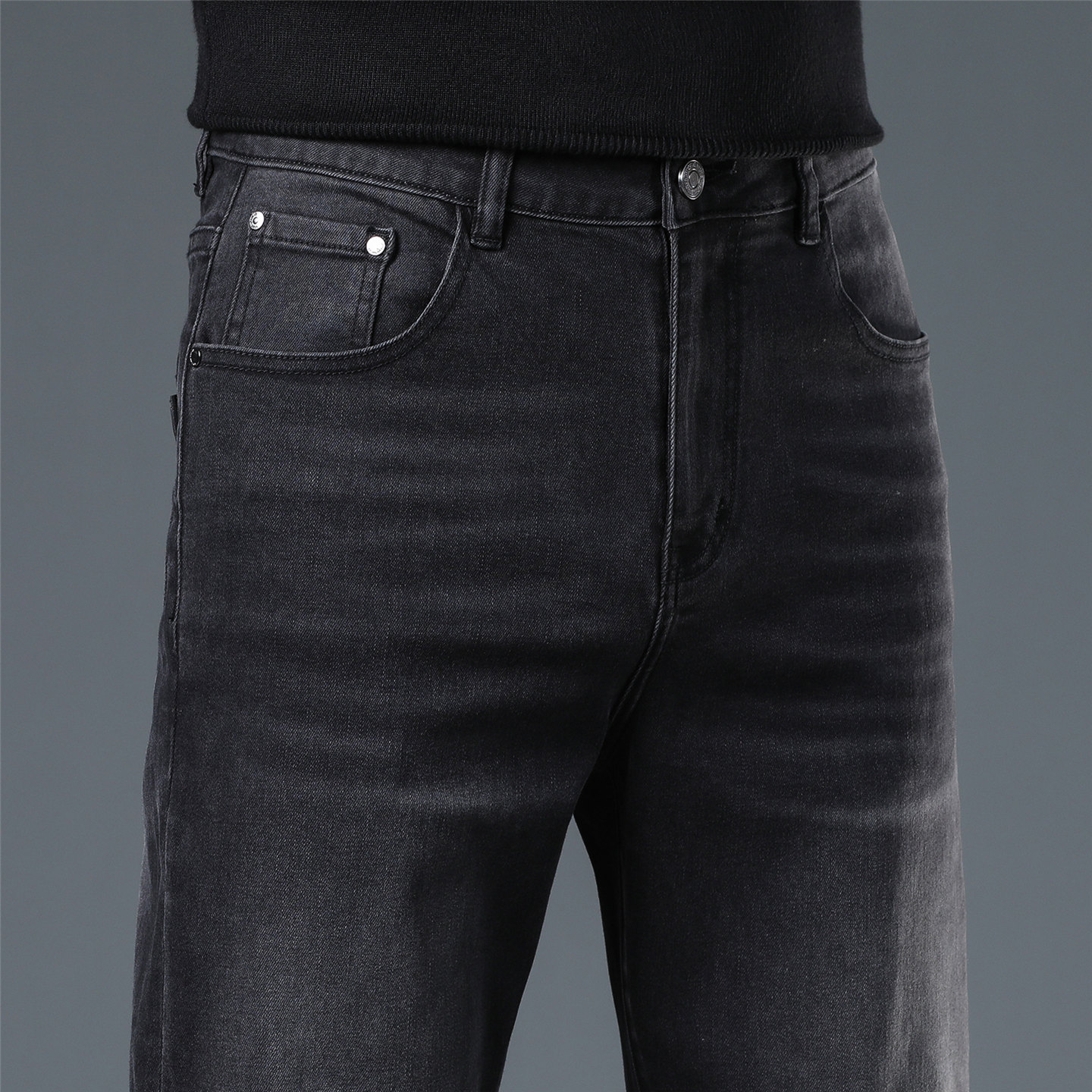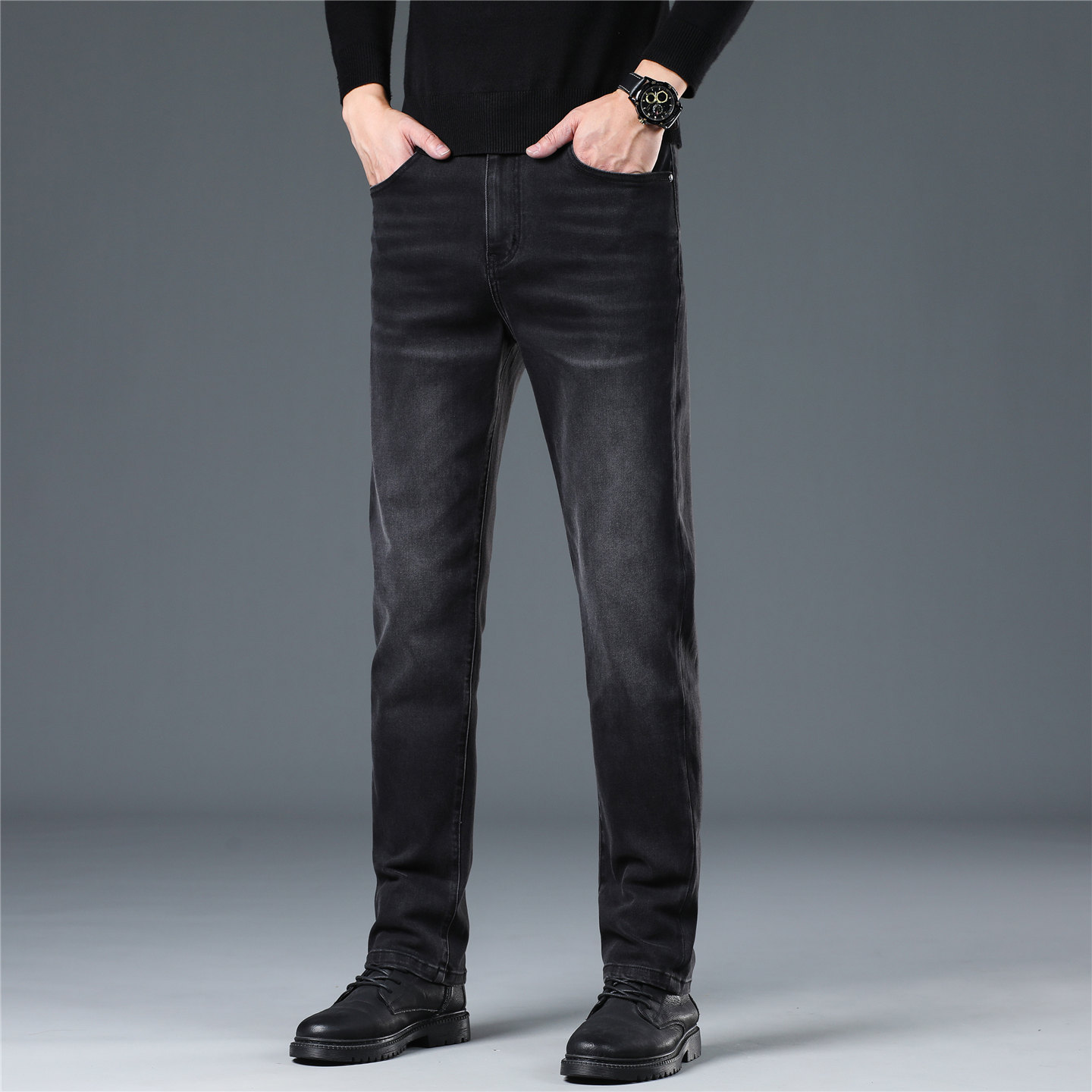 香港2025春秋新款高端黑色牛仔裤男款修身直筒潮流弹力休闲裤子男