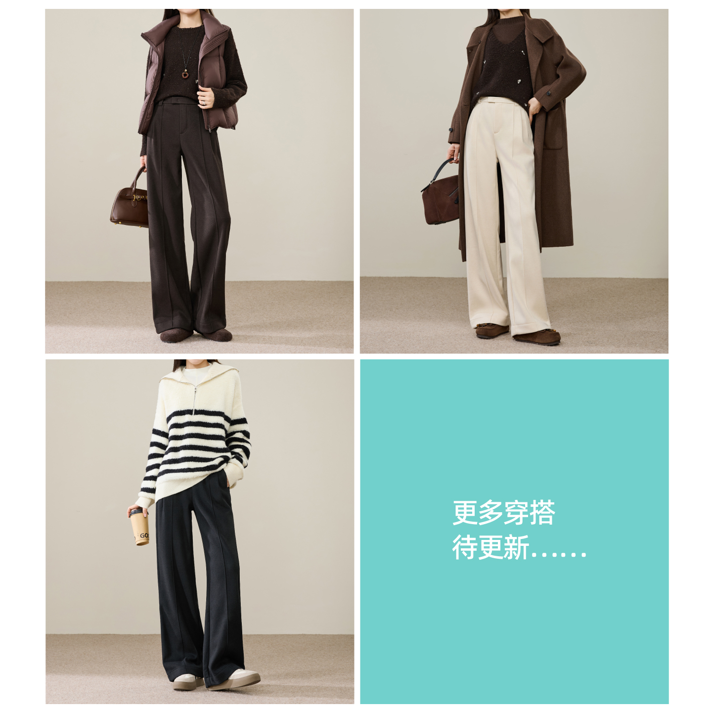 逸阳醋酸羊毛窄版白色西装直筒裤女冬加绒加厚高腰通勤休闲阔腿裤