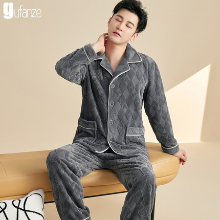 男士法兰绒秋冬季睡衣家居服