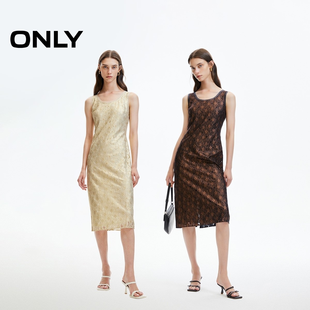 ONLY欧根纱开衩收腰显瘦连衣裙