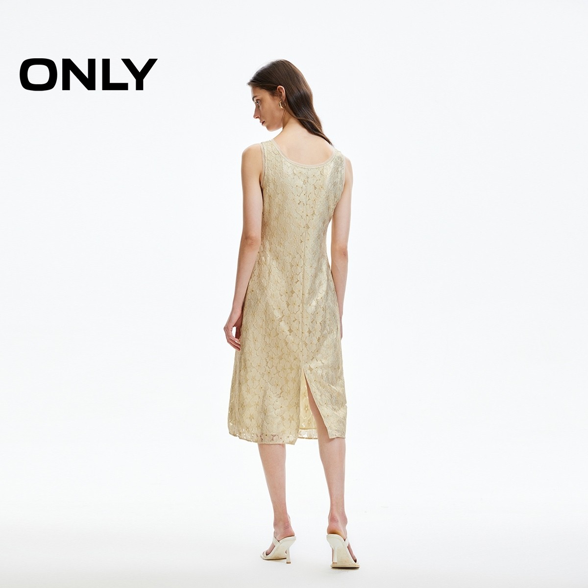 ONLY夏季时尚精致欧根纱开衩收腰显瘦连衣裙女|124307050