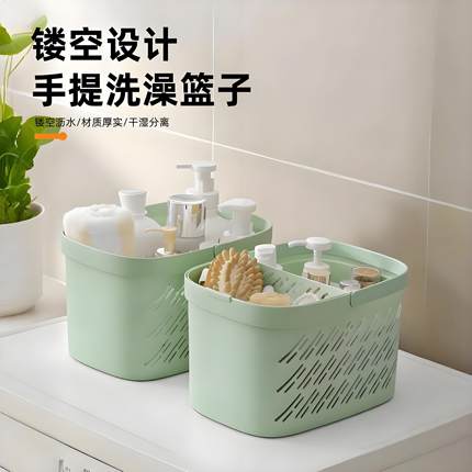 洗澡篮子手提浴室洗漱用品置物篮塑料宿舍浴筐长方形收纳筐洗浴篮