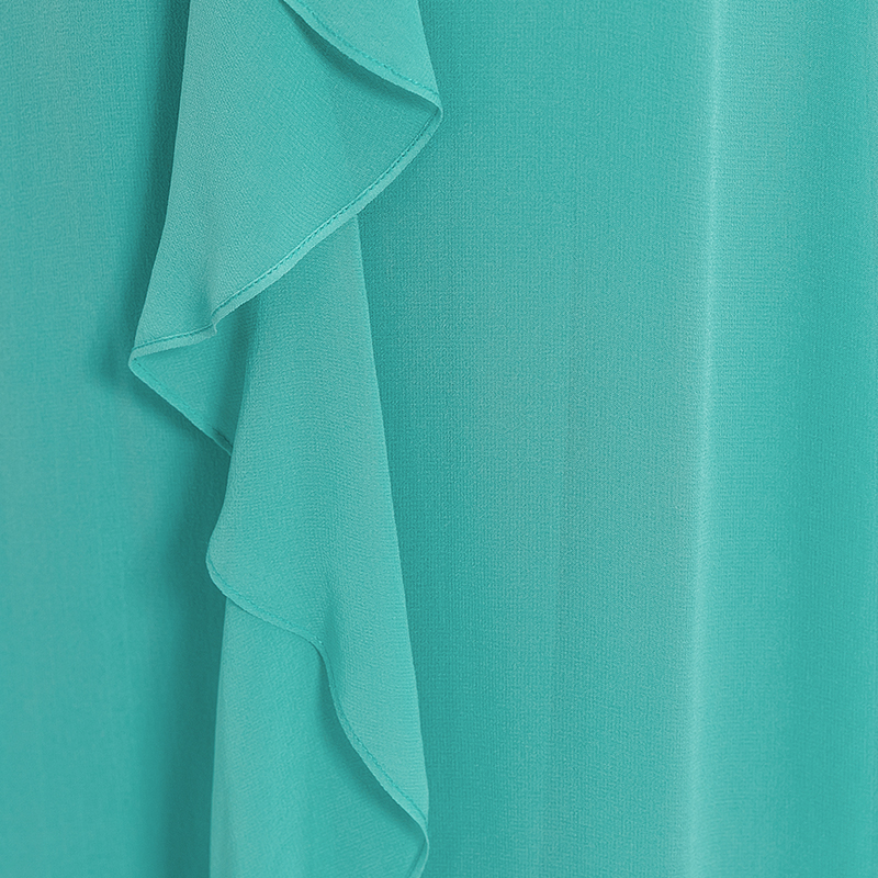 真丝乔其纱水蓝色圆领系带长袖套头荷叶边百搭中长桑蚕丝外套