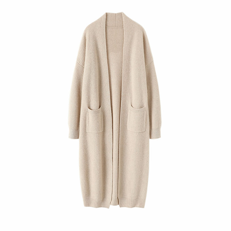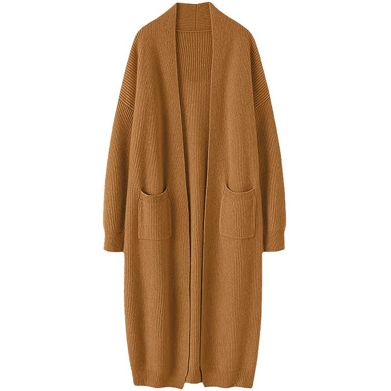 迷离气质!重磅加厚100%纯羊绒开衫女中长款毛衣大外套过膝秋冬季