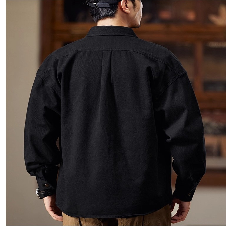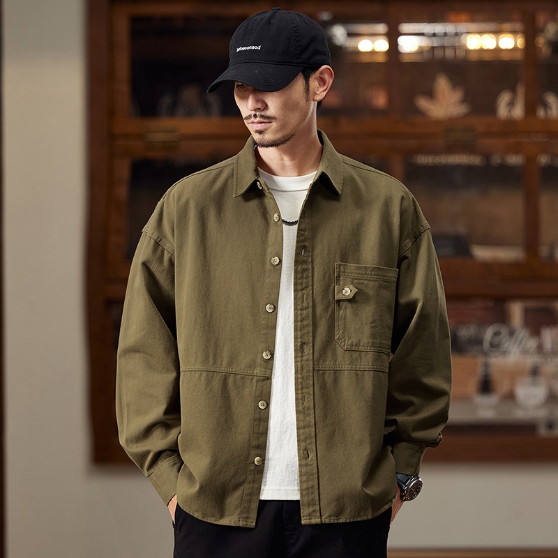 复古商务纯棉工装衬衫男春秋季潮牌宽松夹克痞帅英伦风男士外套