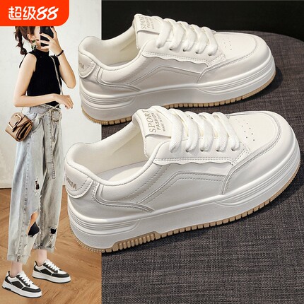厚底小白鞋女百搭春秋松糕2025秋季透气新款流行爆单休闲运动板鞋