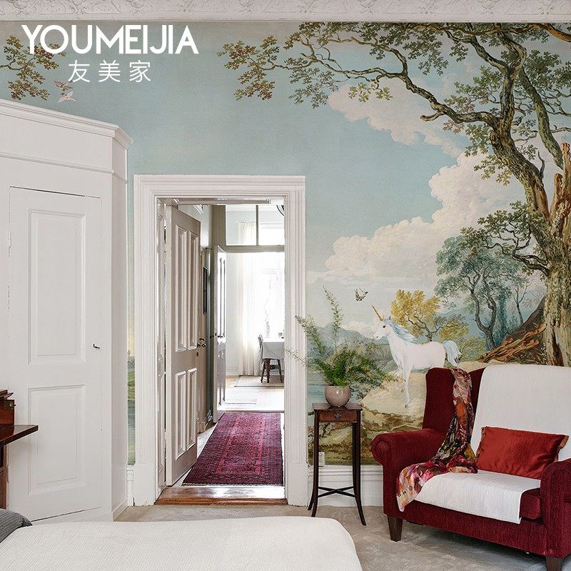 欧式宫廷森林墙纸壁画卧室客厅北欧风壁纸无缝电视背景墙定制壁布