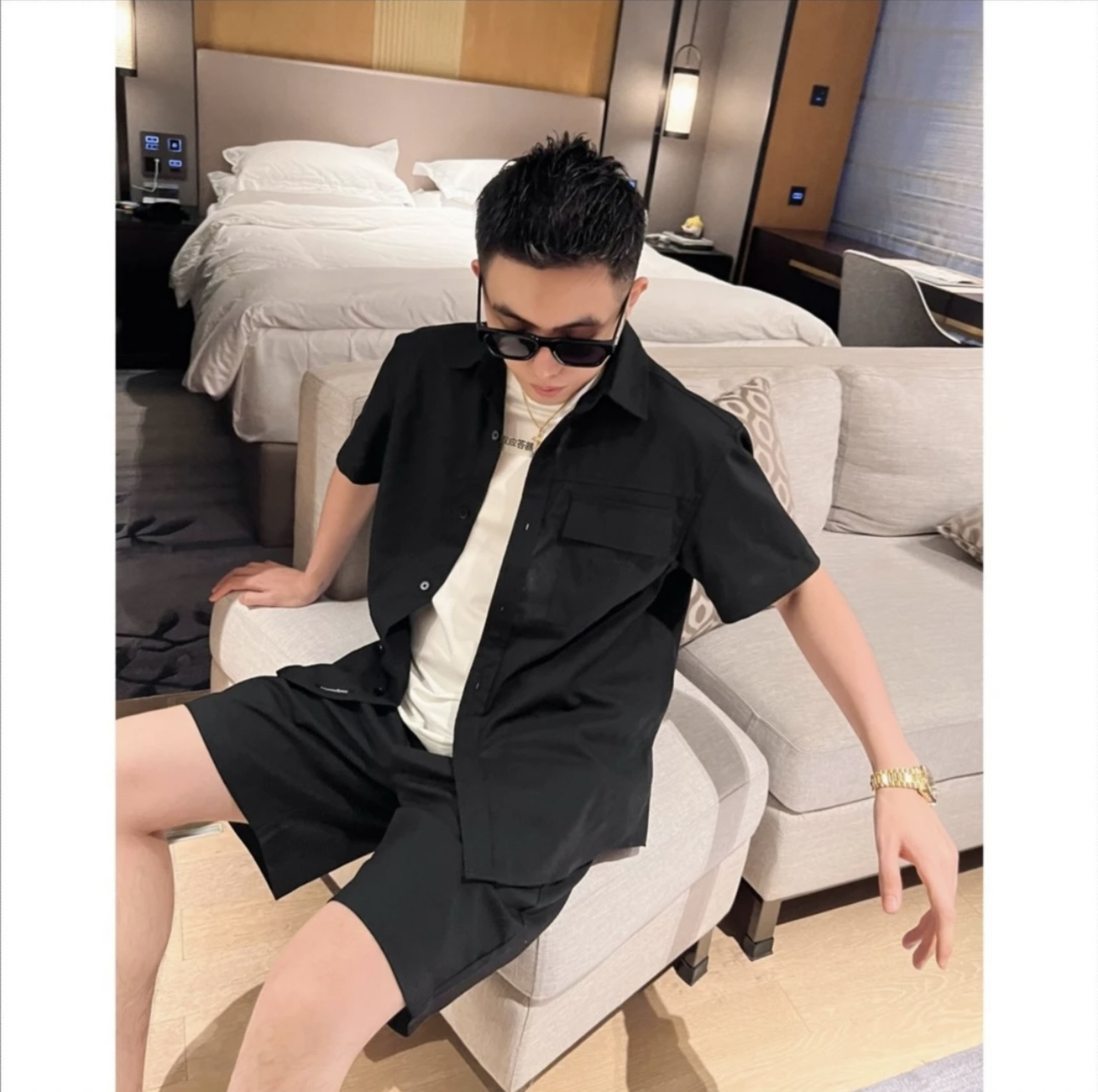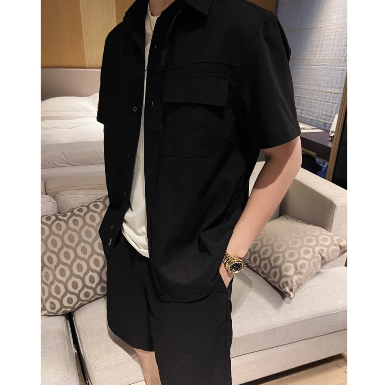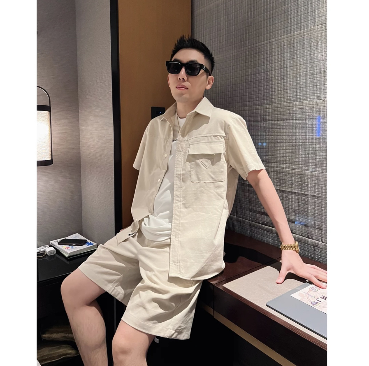 亚麻套装24ss夏季凉感老钱风衬衫短袖短裤简约男士休闲百搭套装