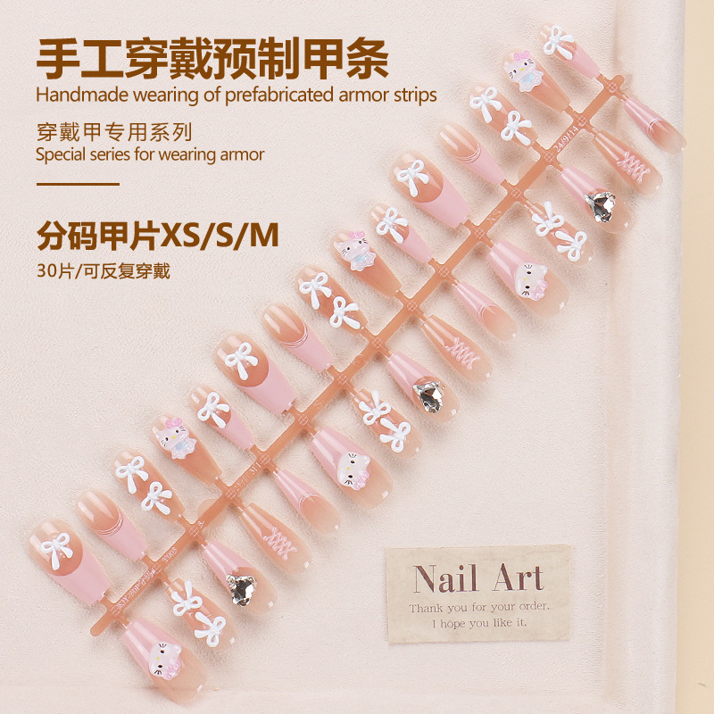 手工蝴蝶穿戴甲高级感猫眼水钻法式美甲甲片小红书辣妹渐变假指甲
