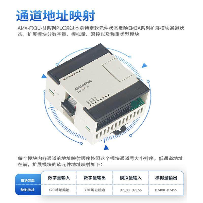 艾莫迅适用于三菱FX3U国产PLC控制器乙太网工控板模拟量扩展模块