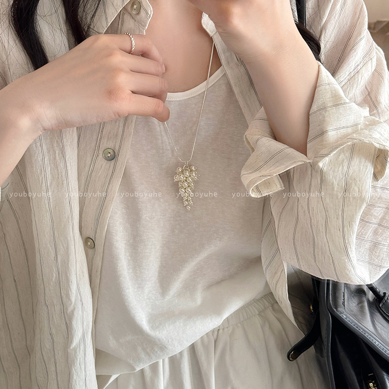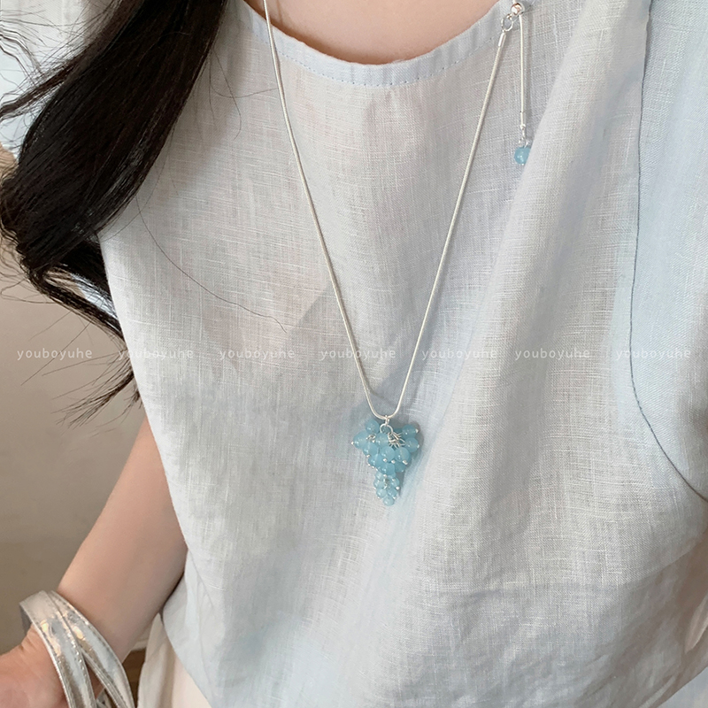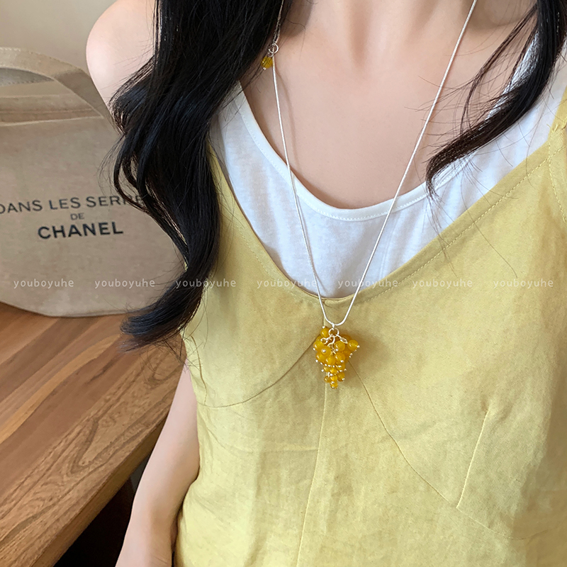 韩系葡萄串珠天然石项链女2025新款高级感长款毛衣链小众独特配饰