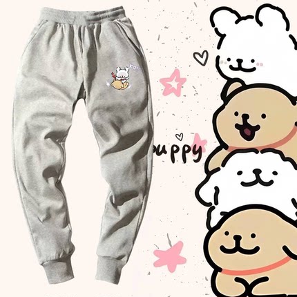 卡通线条小狗卡通印花2024新款休闲男女情侣定制束口卫裤运动长裤