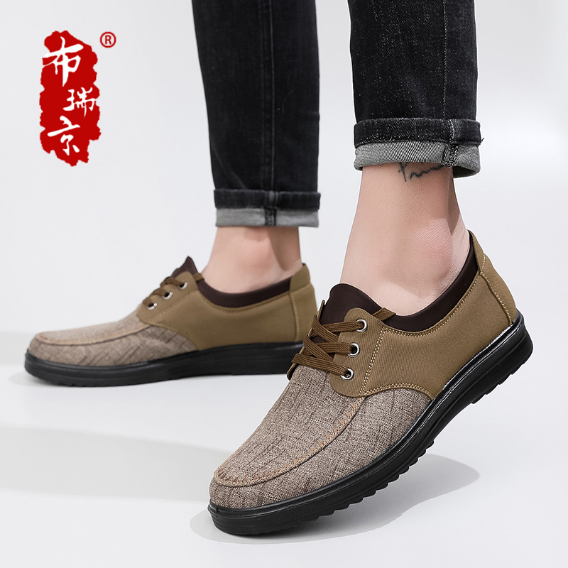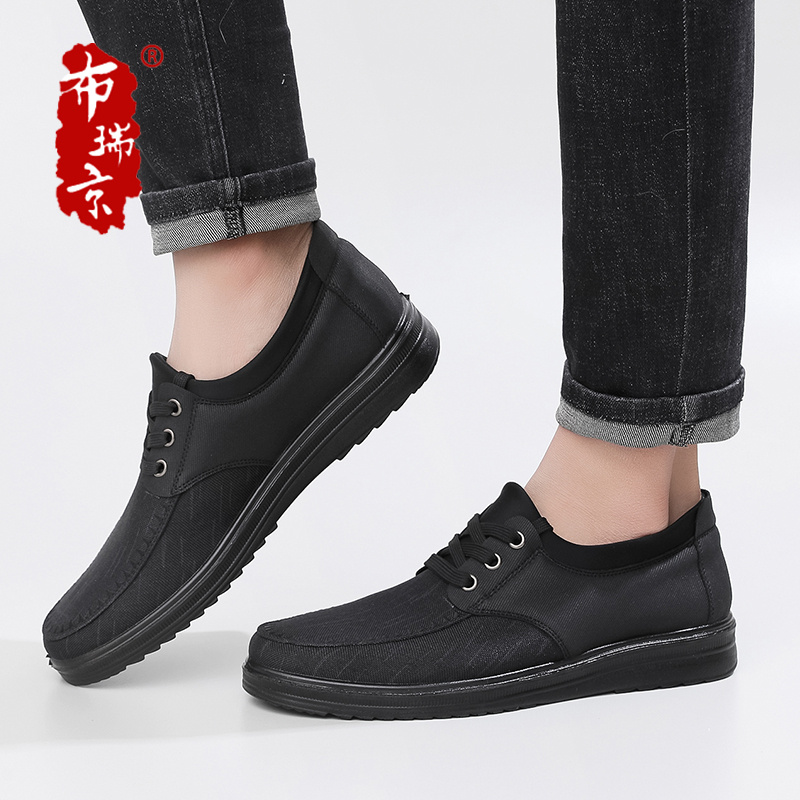 男鞋休闲春季舒适布瑞京36605老北京爸爸老人商务圆头透气黑卡其