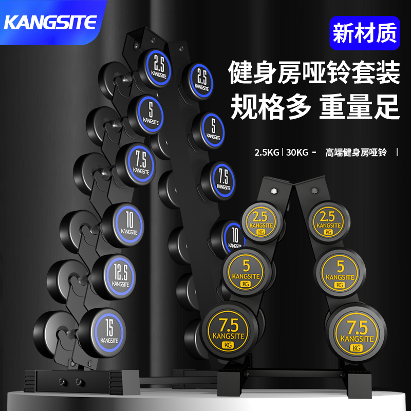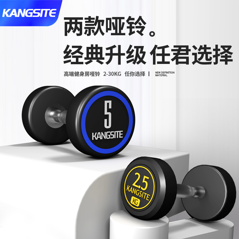 康斯特健身房专用纯钢固定哑铃男士健身家用5/10kg50公斤一对包胶