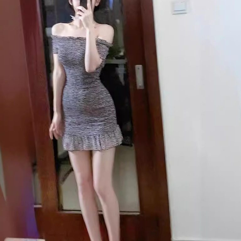 连衣裙女2025新款小糊兔的原厂设计师碎花修身漏肩鱼尾弹力高腰