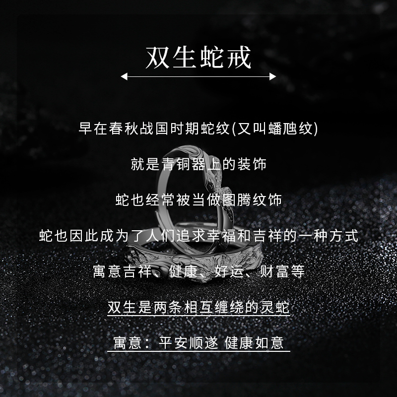 999纯银双生蛇情侣戒指女男一对小众高级感本命年蛇对戒生日礼物