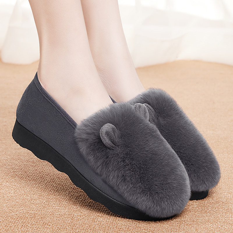 豆豆鞋女冬加绒新款保暖老北京布鞋毛毛鞋外穿一脚蹬秋冬妈妈棉鞋
