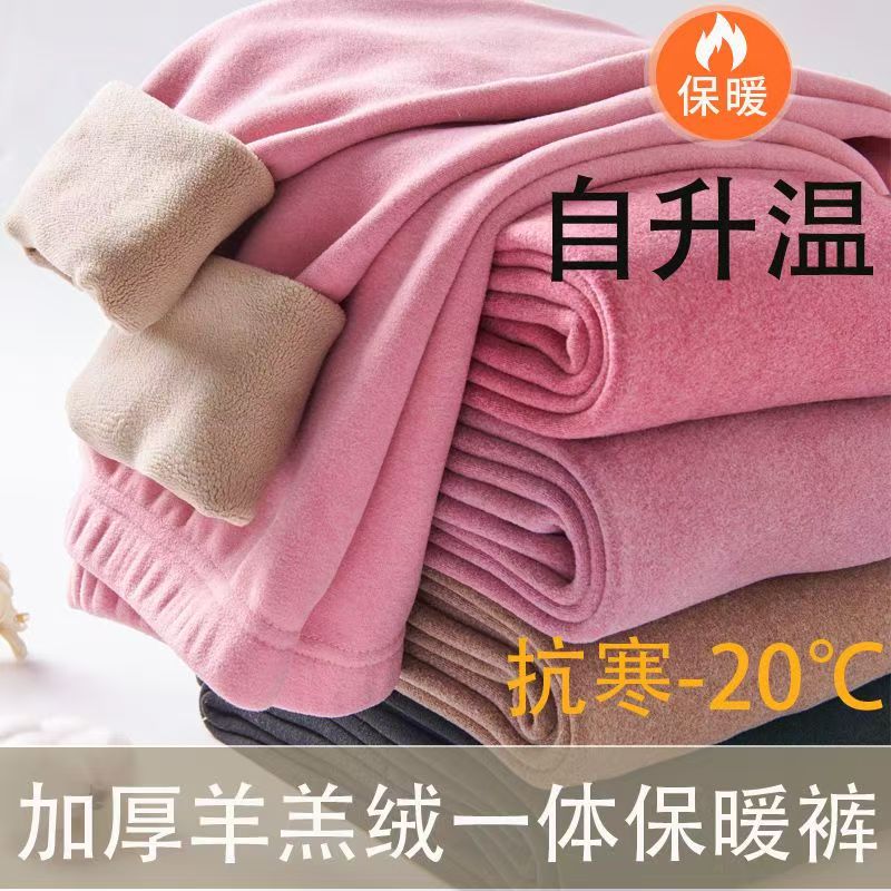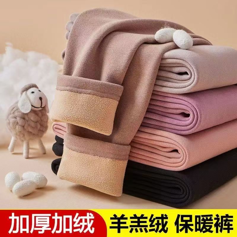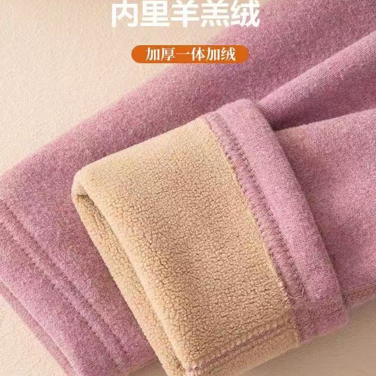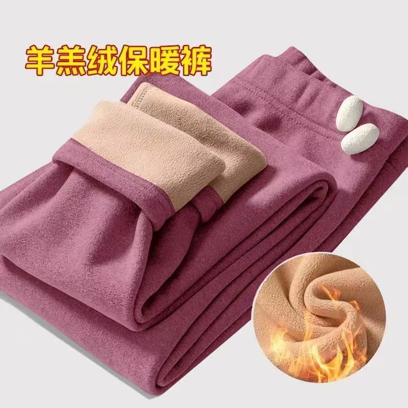 中老年女裤长裤秋冬妈妈弹力纯色裤加绒加厚老人高腰羊羔绒打底裤