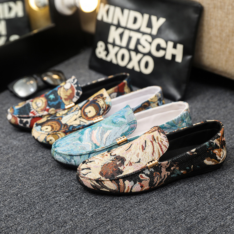 2025春秋新款豆豆鞋男国风一脚蹬懒人潮鞋软底精神小伙休闲布鞋男