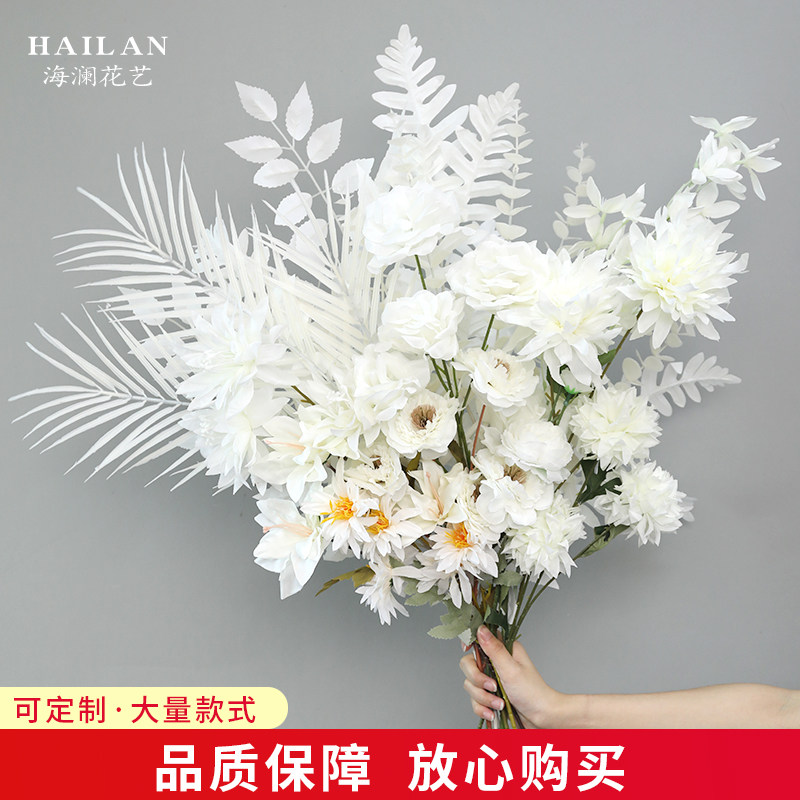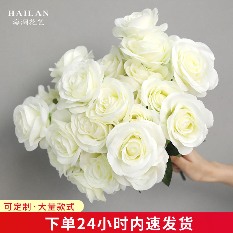 白色仿真花假花婚庆花束玫瑰花绢花婚礼装饰花花艺花材路引地排花