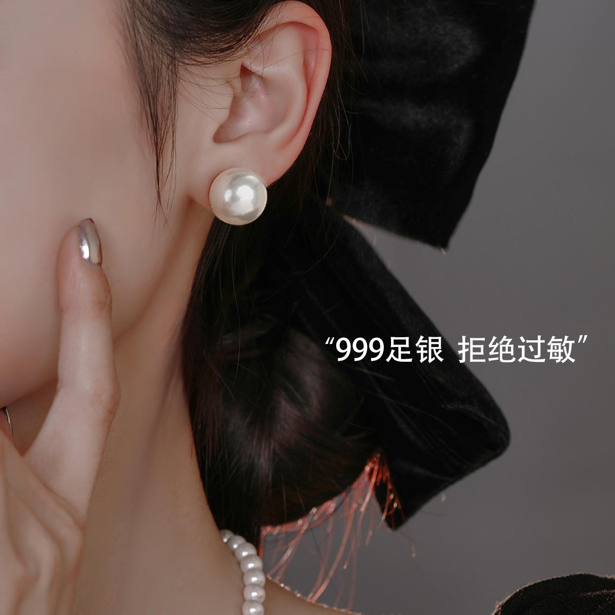 999纯银珍珠耳钉女施家耳环2025新款爆款正圆轻奢小众高级感耳饰